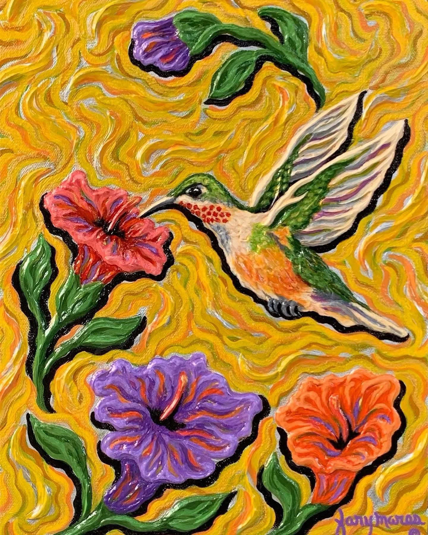 Mares achieves a unique effect by embedding her subjects in light, intense color, rich texture, and flowing, moving lines. Reporters and independent observers note that much of Fany Mares’ art goes beyond detail, tangible matter, and the material level to the inner nature, deeper meaning, and essence of things. Fany Mares was born and raised in Mexico City. Mares began drawing and painting at a young age. She took several art courses during her early school years, and followed that trend during her high school years, while living in Houston, Texas. Fany attended Universidad de las Americas for a couple of years, and obtained her Bachelor's in Art and Design at Universidad Nuevo Mundo in Mexico City.